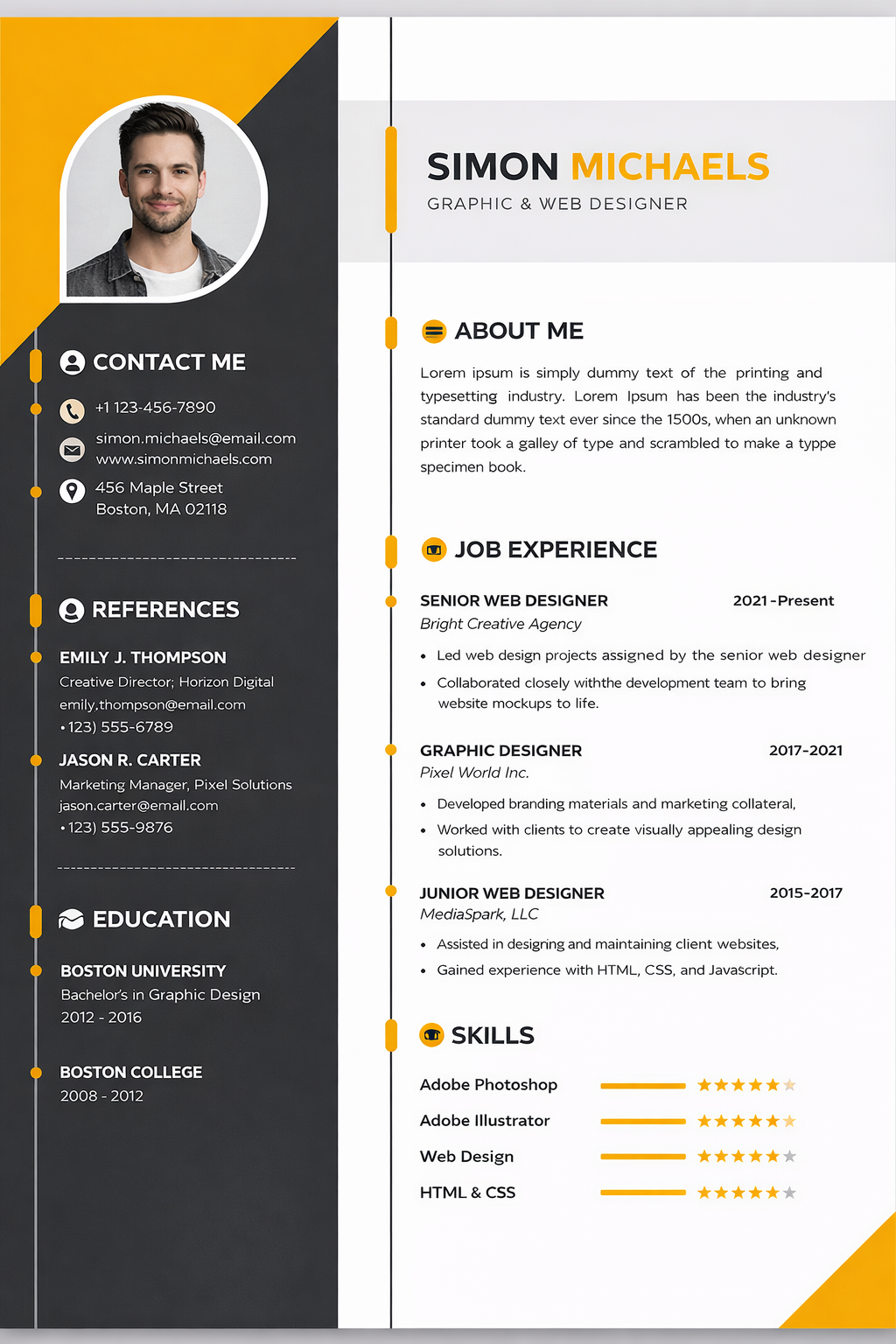 3. Simon Michaels yellow/black resume