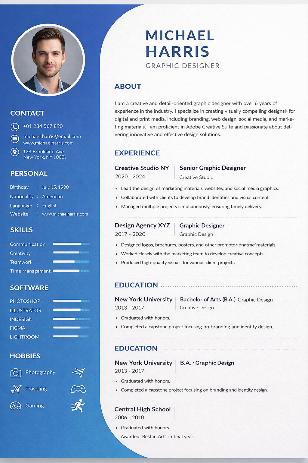 4. Michael Harris blue sidebar resume